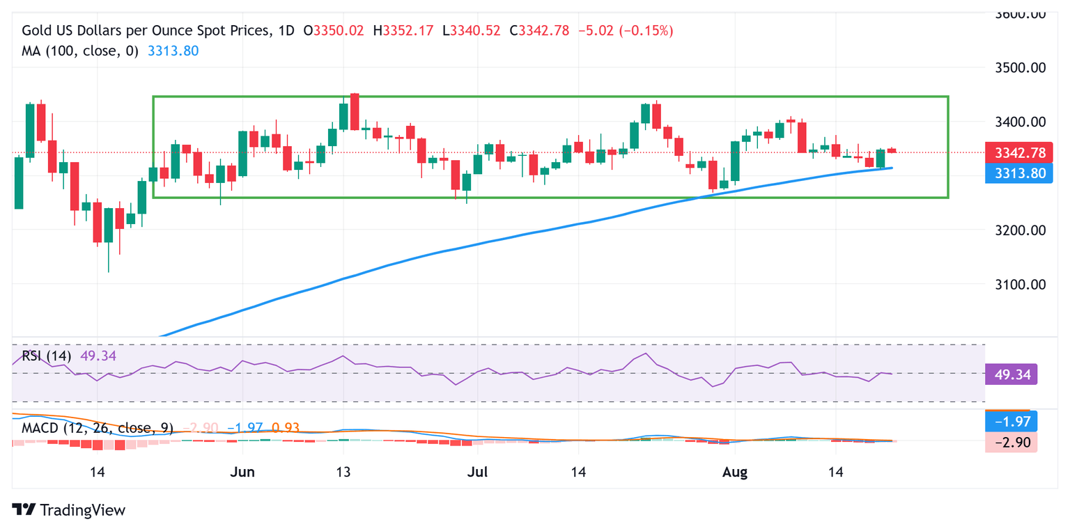 - The focus, however, will remain glued to Fed Chair Jerome Powell's speech at the Jackson Hole Symposium. Investors will look for cues about the Fed's policy stance and rate-cut path, which will play a key role in determining the next leg of a directional move for the Greenback and the yellow metal.