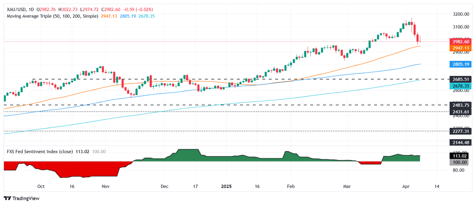 Gold price stabilized near the $2,980, though price action suggests that traders are not finding acceptance past the $3,000 figure. Failure to achieve a daily close above the latter, could trigger a test of the 50-day Simple Moving Average (SMA) at $2,947. A breach below that level could drive XAU/USD towards the $2,900 mark ahead of the 100-day SMA at $2,805.