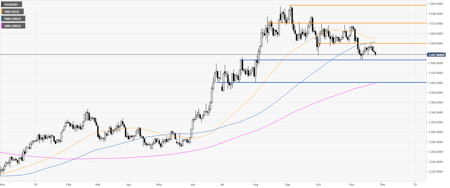 The bulls are, for the time being, absent and bears are likely looking for a breakdown below the 1445 swing low. If the breakout turns out to be successful, the next main support on the way down can be located near the 1400 handle.