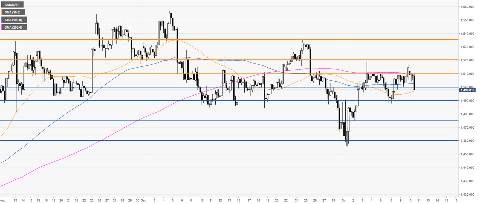- The metal is breaking below the 1,500 psychological mark as the market is mood is improving.