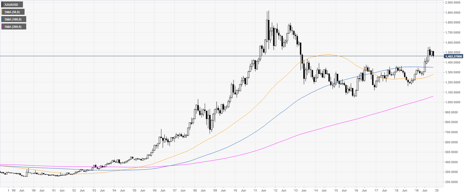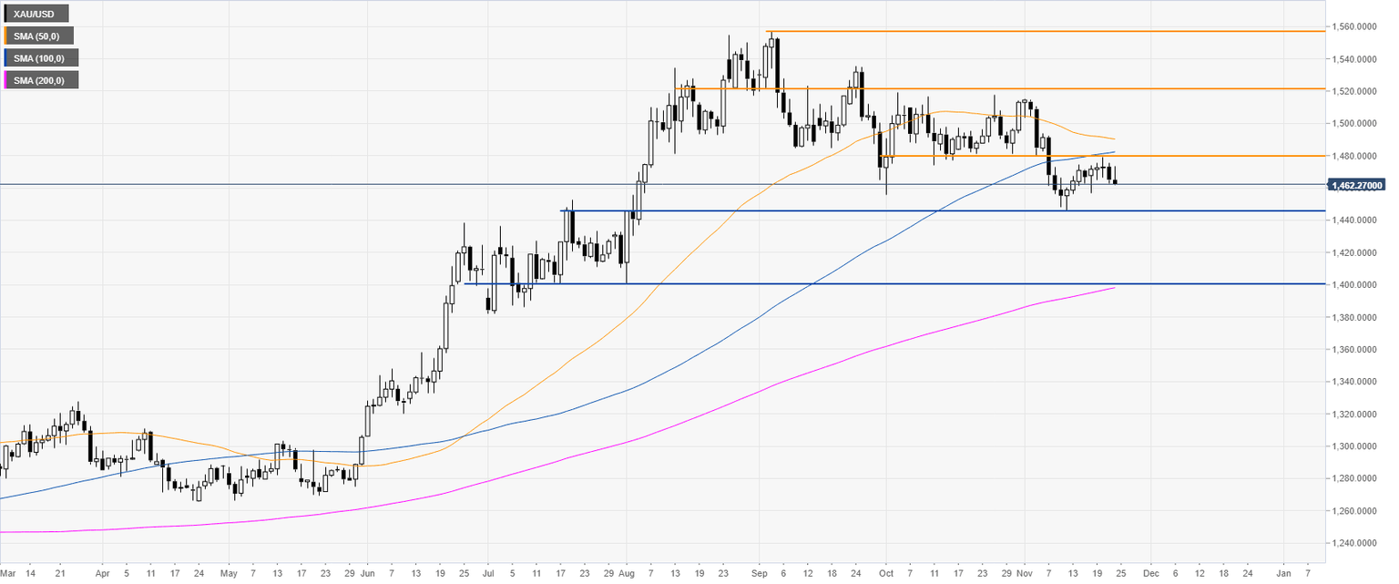 On the daily time frame, The precious metal is trading in a bull flag, making lower lows and lower highs while trading below the 50 and 100-day simple moving averages (DMAs). This week the 1480 resistance and the 100 SMA capped the upside.