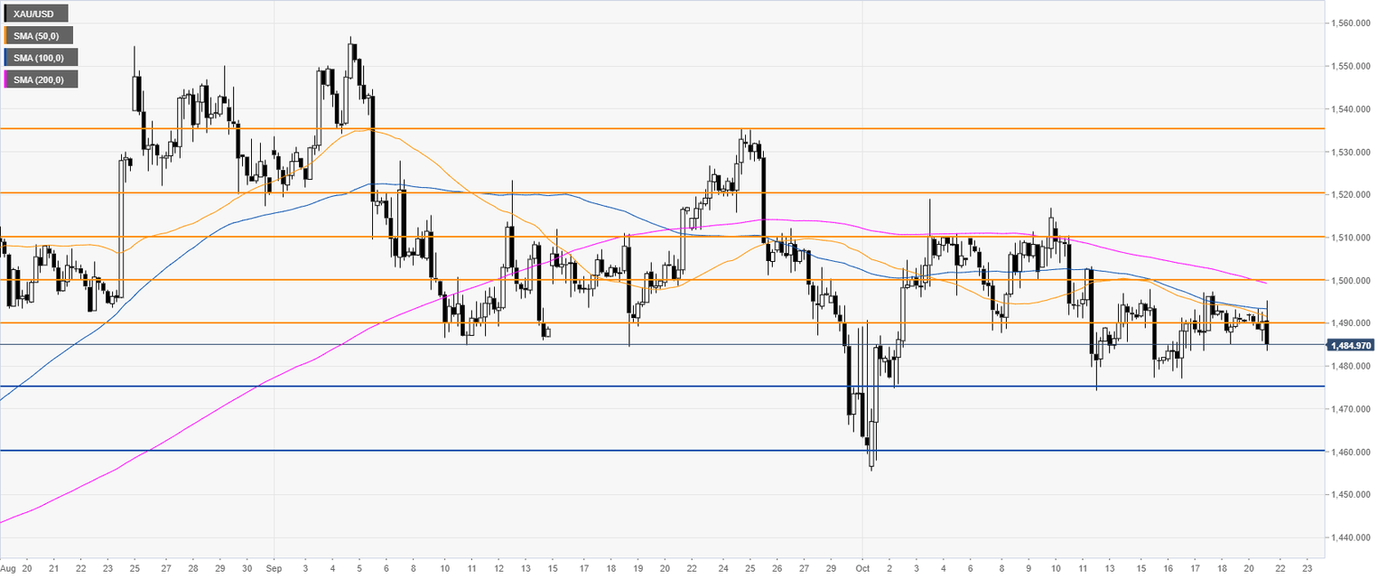 Gold technical analysis: Yellow metal slumps to daily lows, trading sub - $1,490/oz