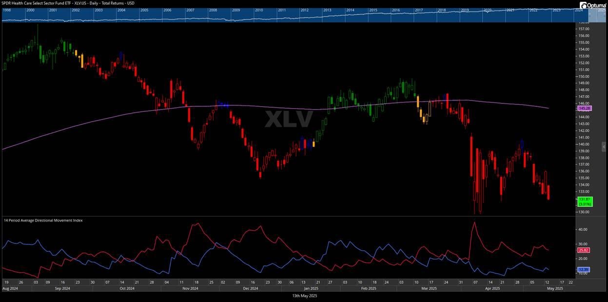 But the Health Care (XLV) chart already looked ugly. If you got hit by that one today, you weren’t paying attention. The “don’t buy” signs have been present and plentiful.