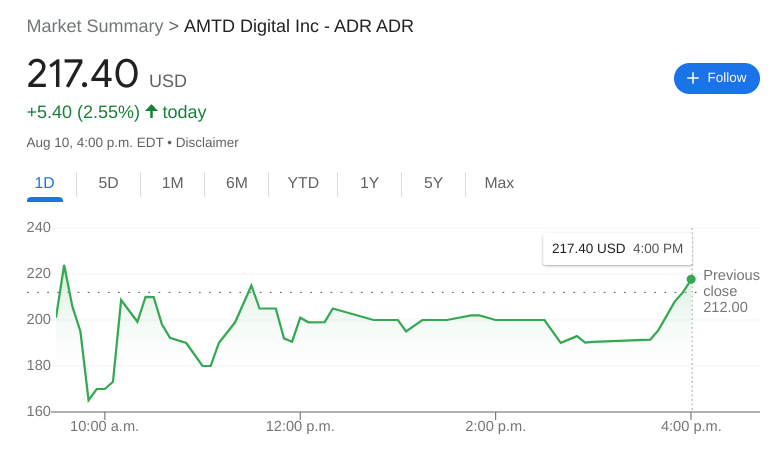 HKD Stock Forecast: AMTD Digital rises in a surprise rebound session for the stock