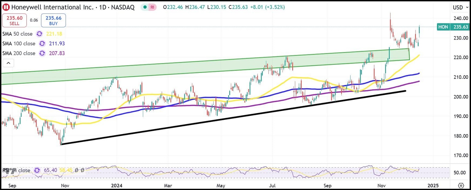 The Dow Jones Industrial Average (DJIA), which houses Honeywell as one of its 30 index constituents, sank lower on continued weakness by UnitedHealth Group (UNH), one of its largest holdings. This was the opposite direction of the NASDAQ Composite, which rallied 1.3% at the time of writing.
