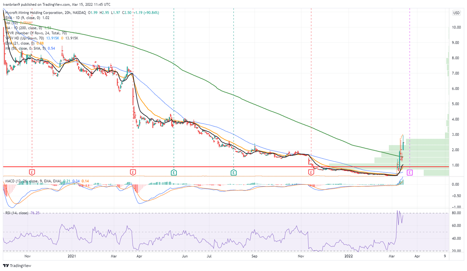 We should point out that Hycroft has made a loss every year going back to 2013. It has a pretty decent revenue stream, but mining is an expensive business, especially in the US compared to some emerging countries. Gold prices are surging due to inflation, and it was this that caught the attention of HYMC traders last week and pushed the price up to $2.65.