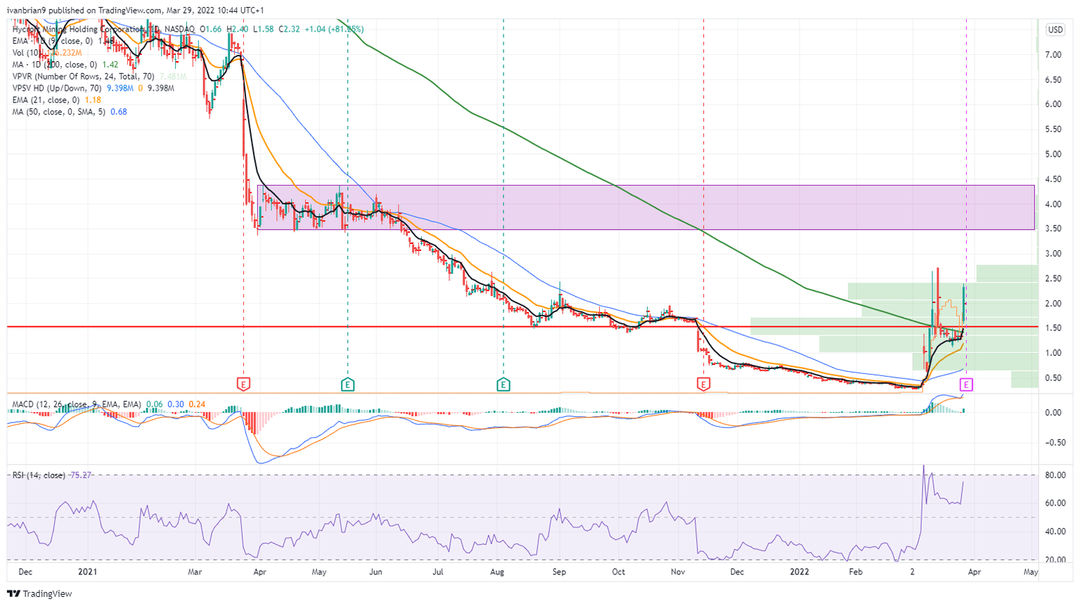 HYMC stock has traded as high as $3.42 in Tuesday's premarket. That brings it back to the consolidation zsone from last April and May so it will provide some resistance.