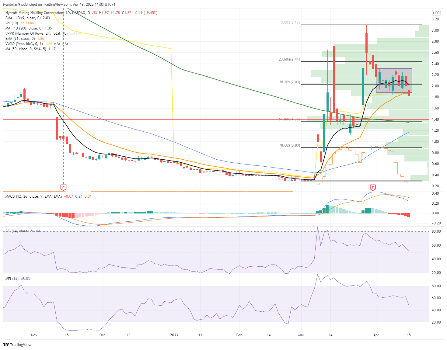 Update: Hycroft Mining stock ended the day under pressure caught up in the malaise left behind by the Federal Reserve Chairman Jerome Powell. The fed chair told an International Monetary Fund panel that restoring price stability is "essential" and that a 50-basis point rate hike was "on the table" at the May Federal Open Market Committee meeting. This forced Wall Street onto its knees.