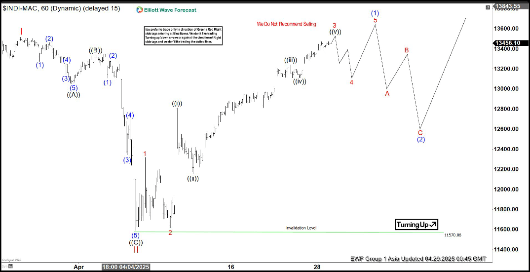 The $IBEX, Spain’s stock market index, may soon surpass its peak from March 25, 2025, before a tariff war triggered a selloff. That peak marked the end of wave I in Elliott Wave analysis. The subsequent decline, wave II, formed a zigzag pattern, as shown on the 1-hour chart. From the March 25 high, wave ((A)) dropped to 13,051.8, wave ((B)) rebounded to 13,347.3, and wave ((C)) fell to 11,570.06, completing wave II.