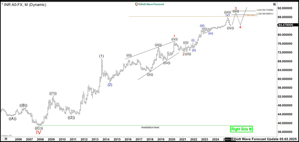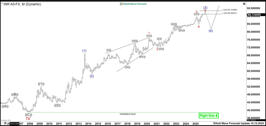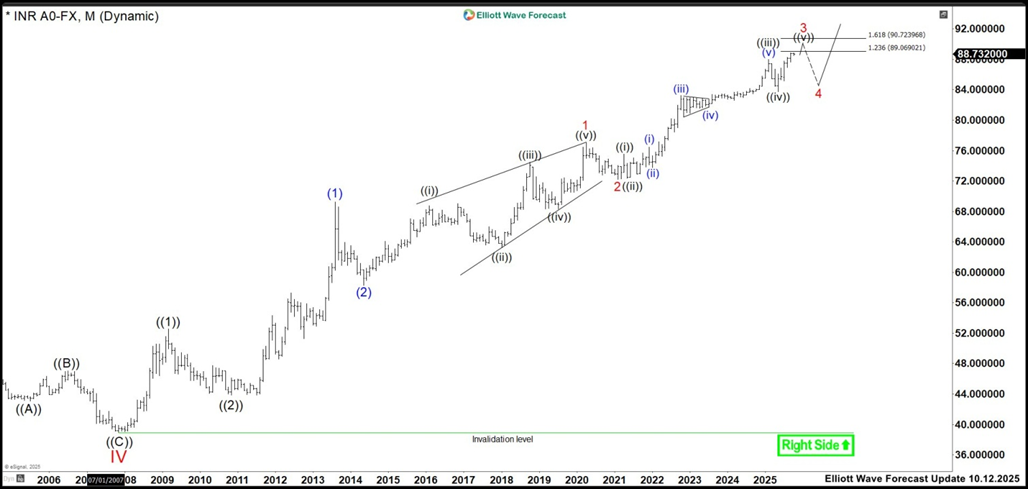 Elliott Wave forecast: USD/INR monthly chart October 2025