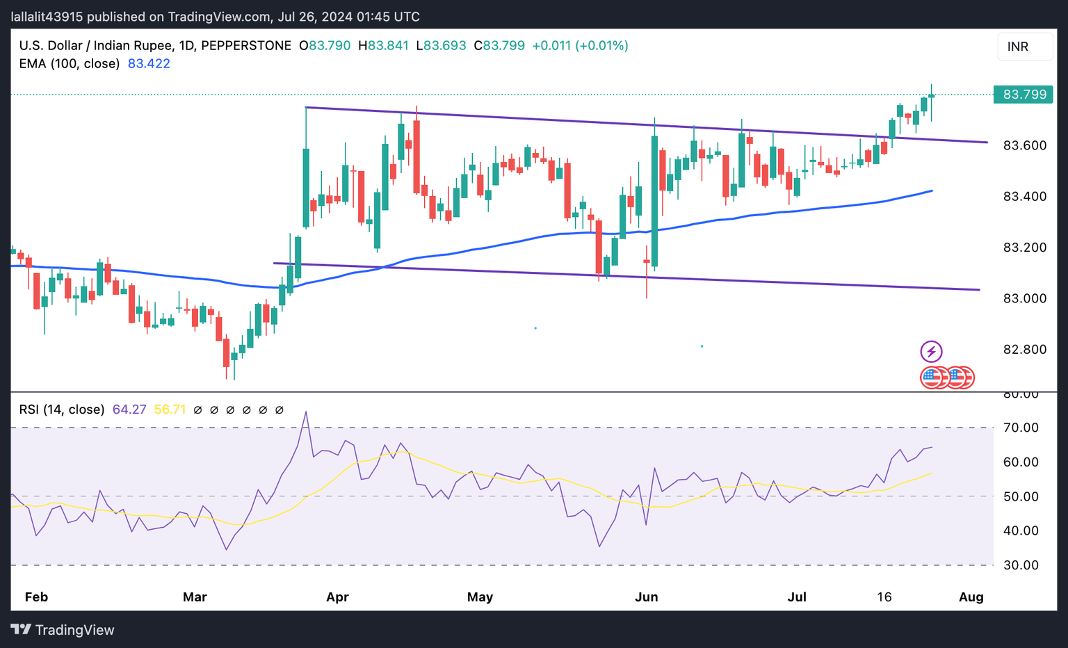 The immediate resistance level for the pair will emerge at the all-time high of 83.85. Extended gains above this level could take USD/INR to the 84.00 psychological mark.