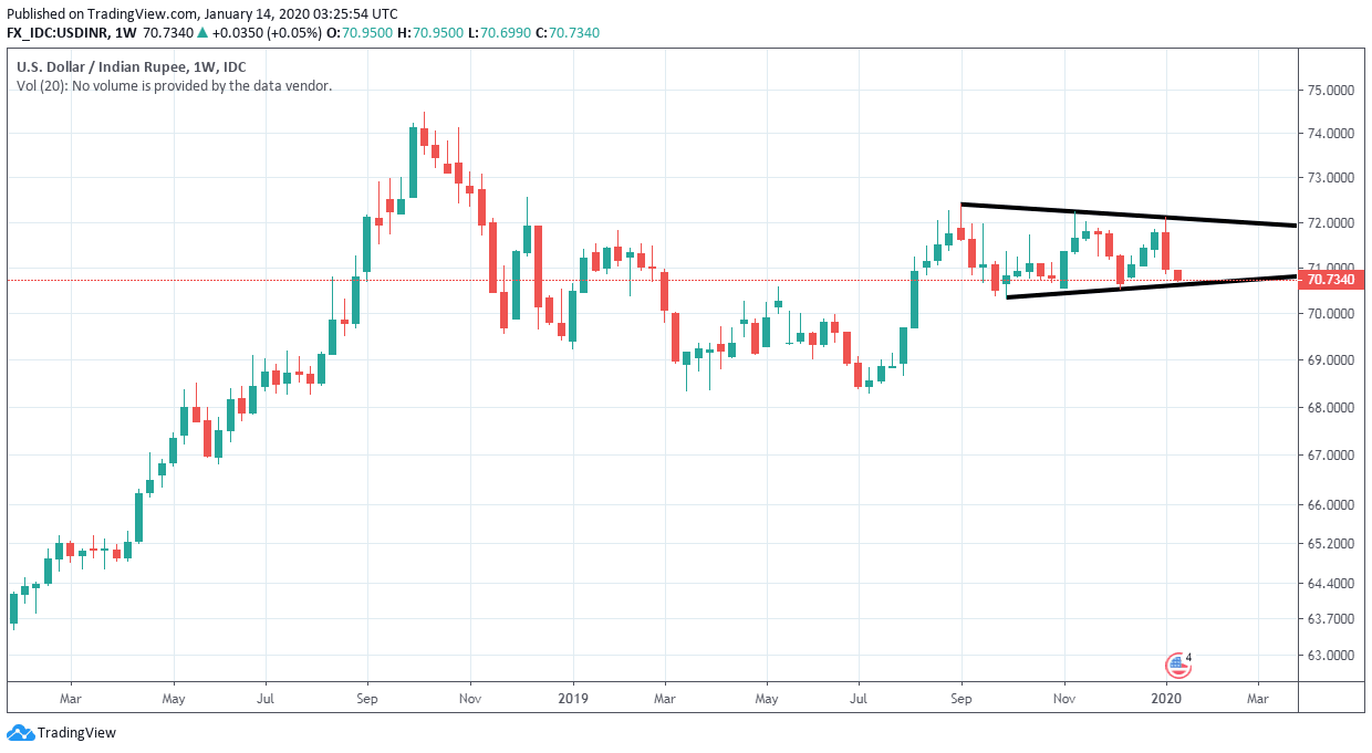 The USD/INR rebounded today after hitting five-week lows at 70.71. The recovery found resistance under 71.00 and as of writing trades around 70.85, far from the top, but still about to post the first daily gain in five days.