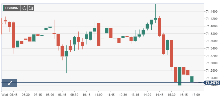 The USD/INR dropped further to 71.22 hitting the lowest intraday level since November 11. The pair remains near the lows, on its way to the third daily decline in a row.