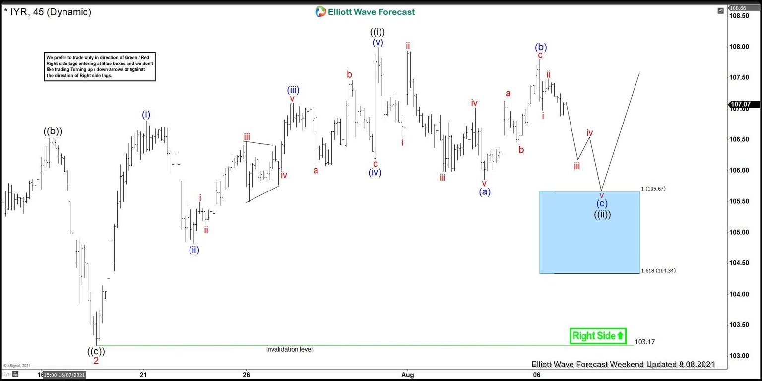 IYR 1 Hour Elliott Wave Analysis 8.15.2021