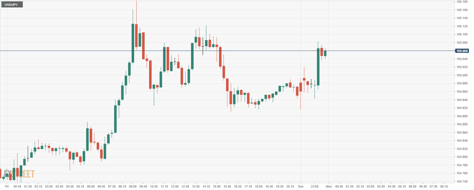 The data has failed fend off the US dollar bulls and the price remains firm above the 105 figure, higher by 0.13% at the time of writing.