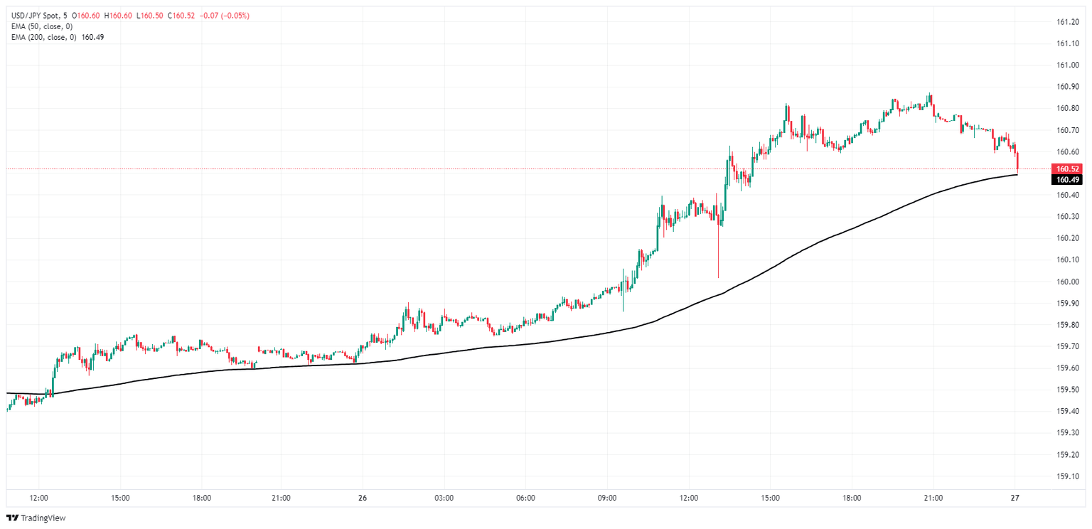 USD/JPY is slipping back i nearly Thursday trading, sliding to 160.50 after hitting a fresh 38-year peak on Wednesday. The pair clipped into an almost four-decade high at 160.87 this week, hitting bids that have remained unseen since 1986.