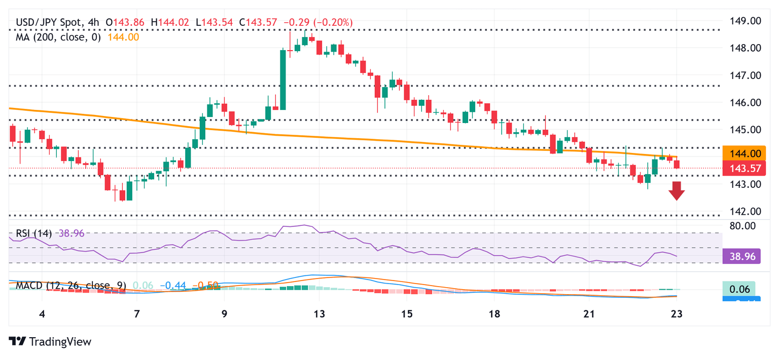From current levels, the 143.25 area, or the 61.8% Fibonacci retracement level, could offer some support ahead of the 143.00 round figure. This is followed by the 142.80 region, or over a two-week low touched on Thursday, below which the USD/JPY pair could accelerate the fall towards the next relevant support near the 142.40-142.35 area before dropping to the 142.00 mark.