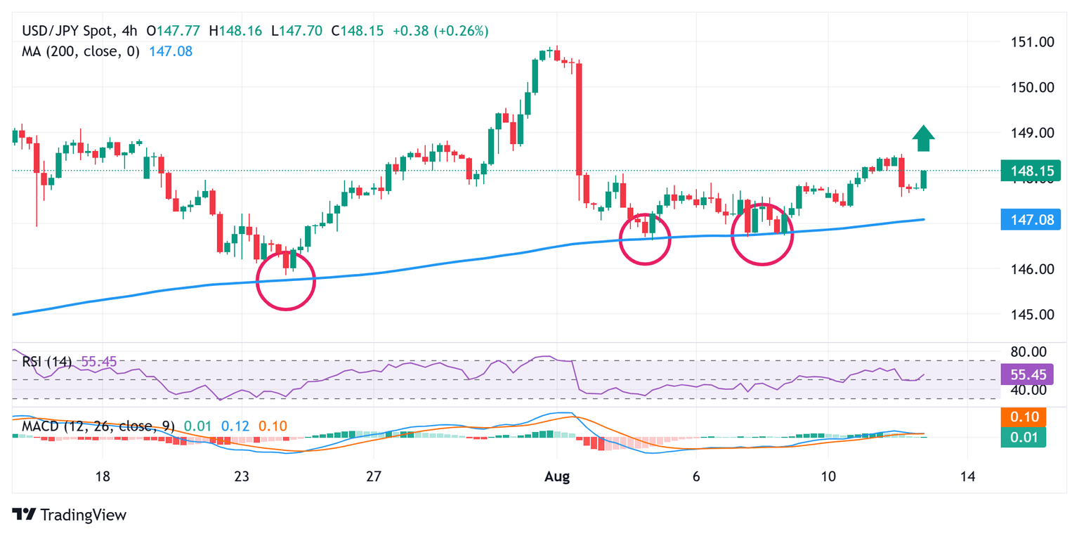 On the flip side, weakness below the Asian session low, around the 147.70 region, might still be seen as a buying opportunity near the 147.00 mark and remain limited near the 146.80 support. The latter represents the 200-period Simple Moving Average (SMA) on the 4-hour, which, if broken, could make the USD/JPY pair vulnerable to test sub-146.00 levels and slide further to the 145.00 psychological mark.