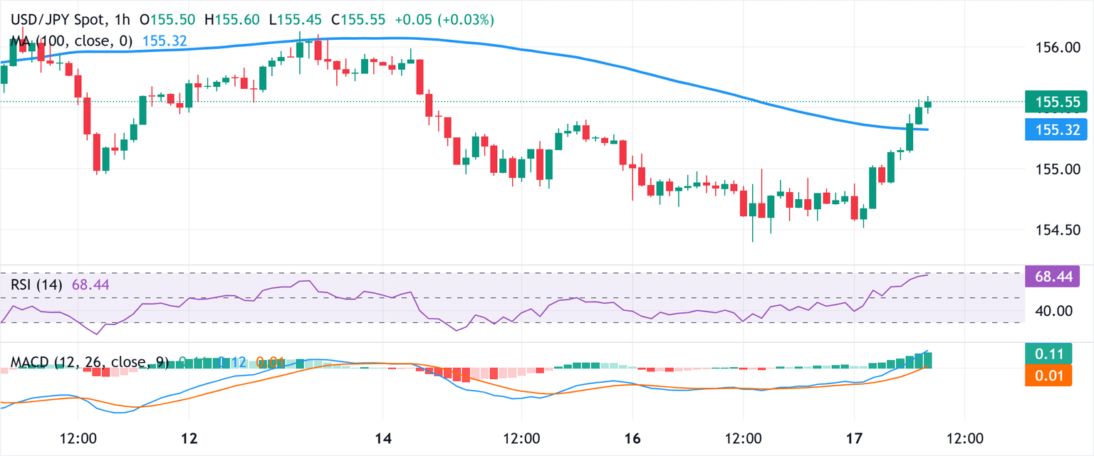 USD/JPY might aim to reclaim 156.00; intraday breakout through 100-hour SMA comes into play