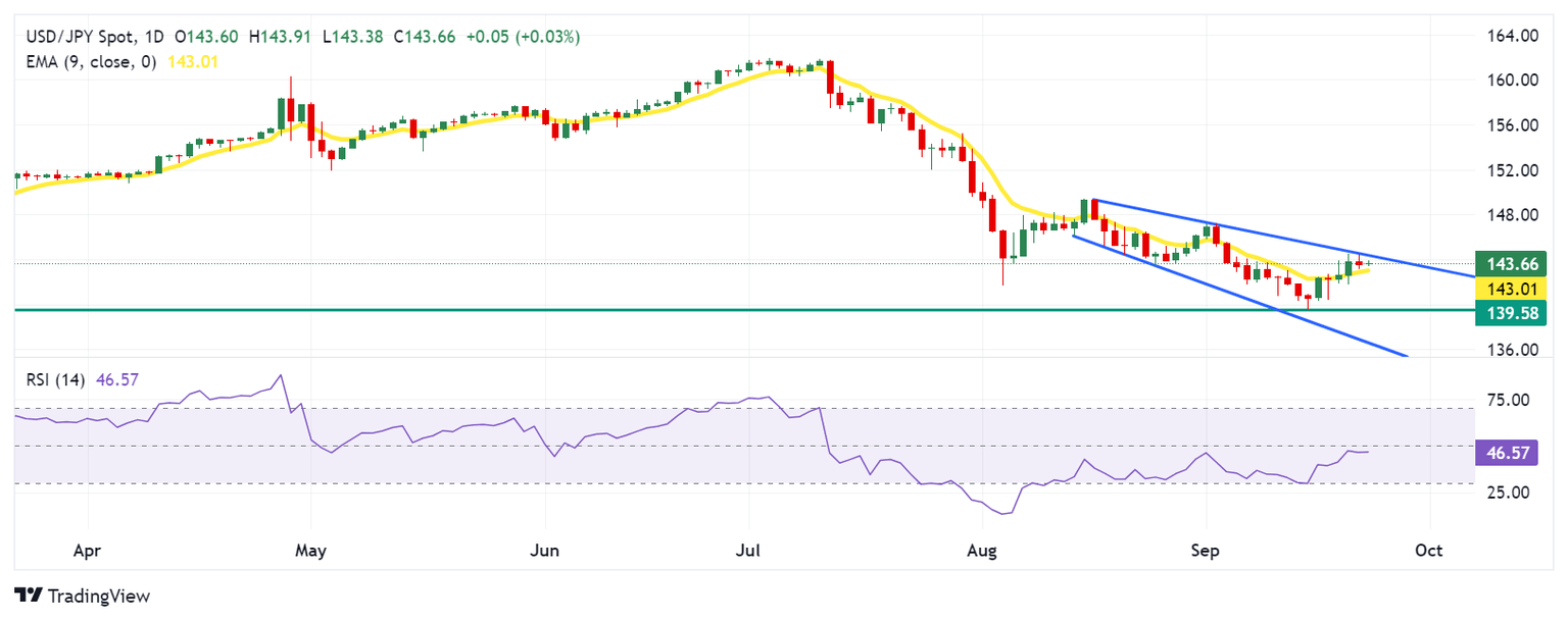 Technical Analysis: USD/JPY holds position above the nine-day EMA near 143.50