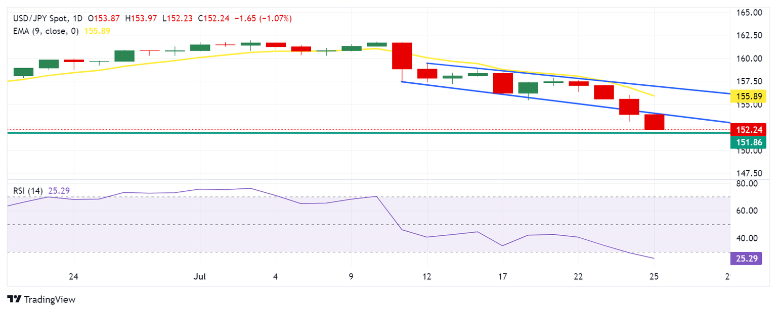 Technical Analysis: USD/JPY depreciates toward 152.00
