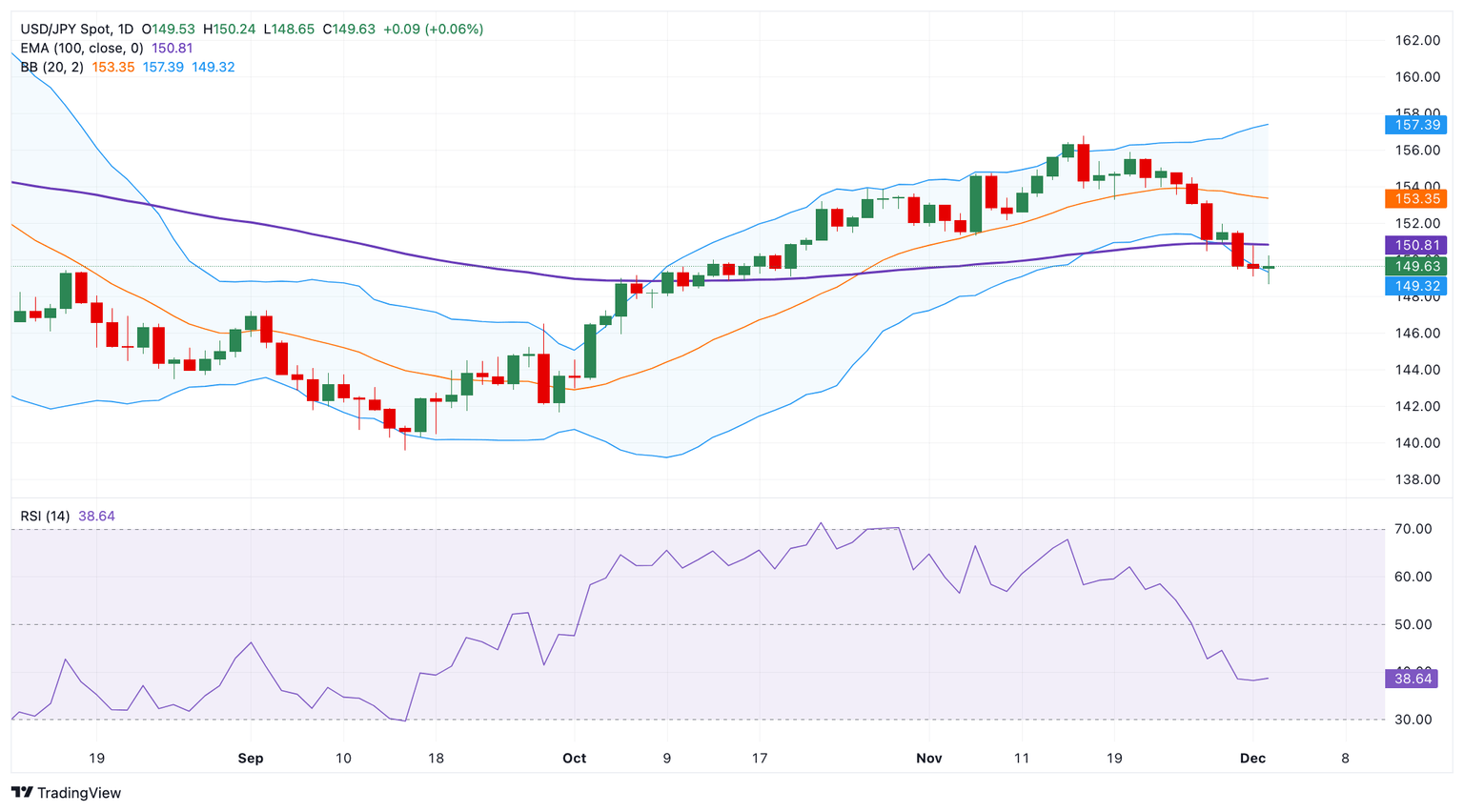 On the brighter side, the crucial resistance level emerges at the 150.00 psychological mark. Sustained upside momentum could even take it all the way to the next hurdle at 154.70, the high of November 6. A decisive break above the mentioned level could attract enough bullish energy to lift USD/JPY back up to 155.89, the high of November 20.