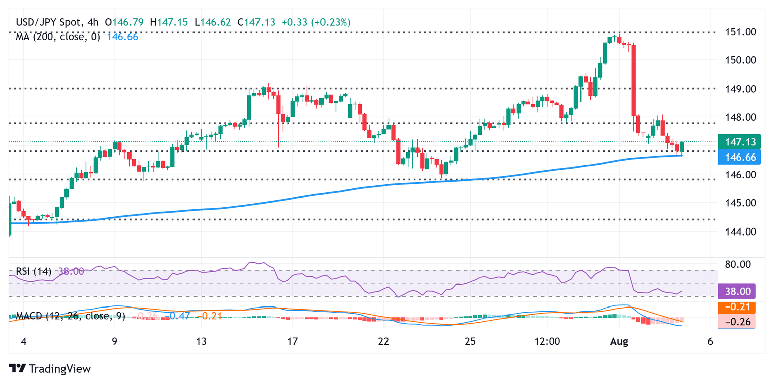 The Japanese Yen (JPY) remains on the back foot against a broadly rebounding US Dollar (USD) and assists the USD/JPY pair to hold steady above the 147.00 mark heading into the European session on Tuesday. Investors remain concerned that domestic political uncertainty could complicate the Bank of Japan's (BoJ) policy normalization path. This, along with the prevalent risk-on environment, turns out to be a key factor undermining the JPY's safe-haven status.