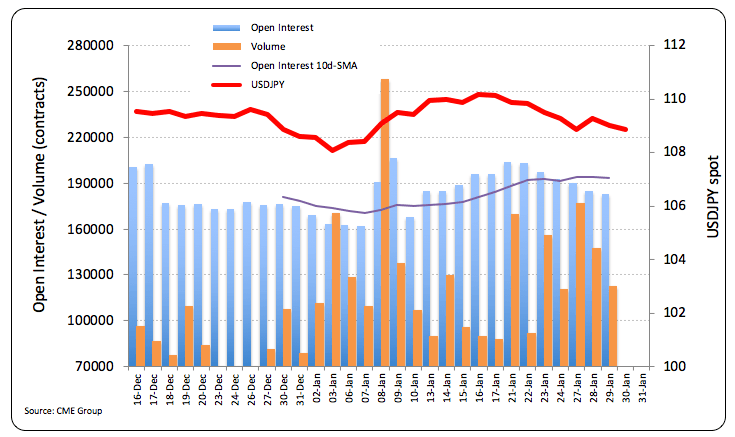 The decline in USD/JPY is seen facing the next significant contention in the 108.70 region against the backdrop of shrinking open interest and volume in the Japanese safe haven. In that area coincide the 100-day SMA, a Fibi retracement of the January rally and weekly lows.