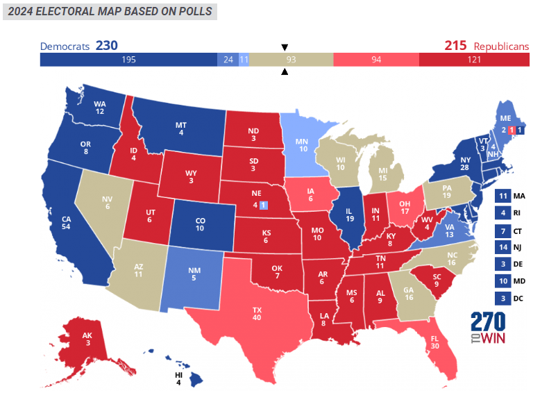 In the meantime, election polls point to a much tighter race than what betting odds suggest. The TIPP poll has Trump and Harris tied at 48 in nationwide, the Ipsos poll has Harris leading by two points, 50 vs 48, and the Atlas Intel poll has Trump having a one point lead, 50 vs 49, as per RealClearPolling. In some swing states, such as Arizona and North Carolina, Trump seems to be staying on top, while Harris seems to have closed the gap in others, such as Nevada, Georgia and Pennsylvania.