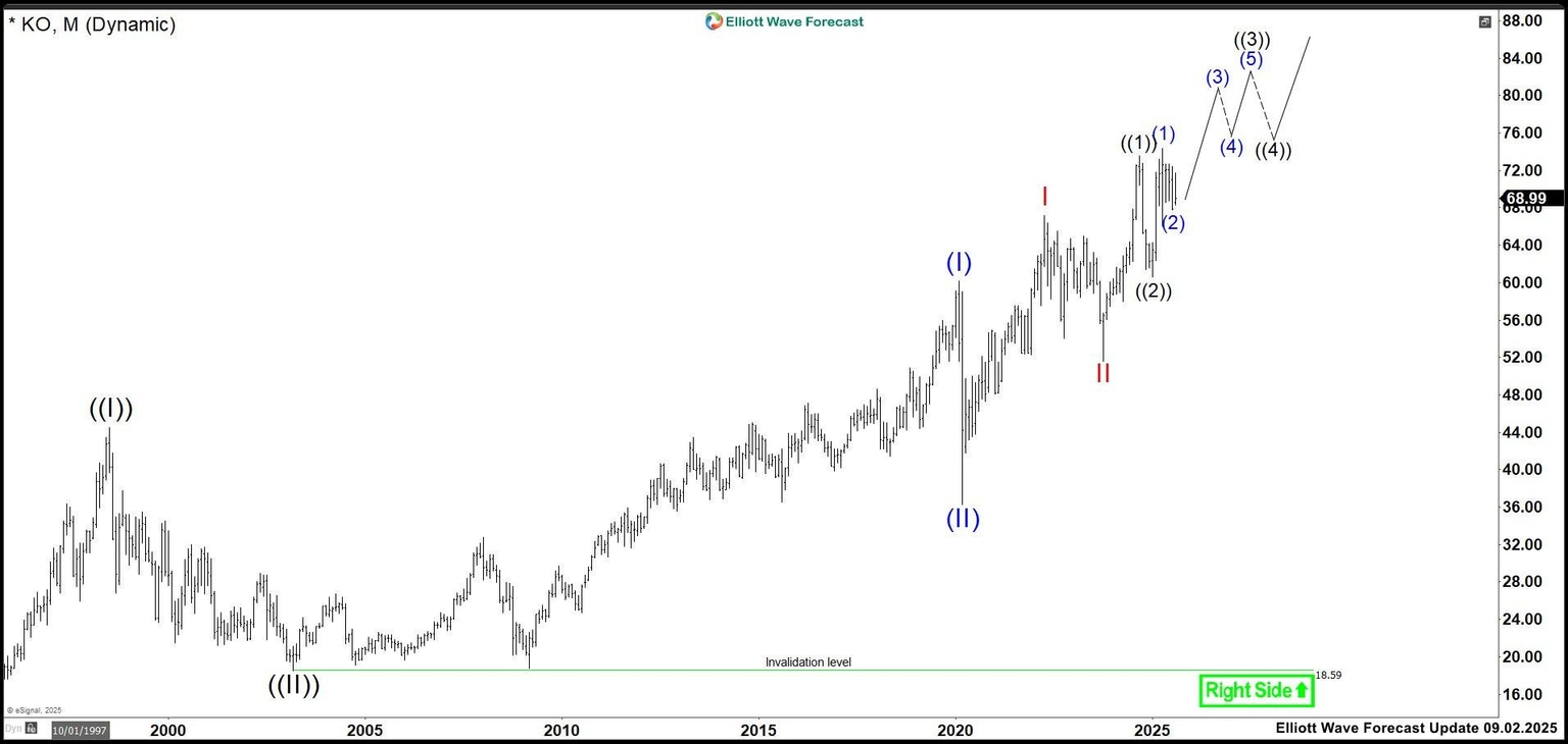 Elliott Wave outlook nest: KO monthly chart September 2025