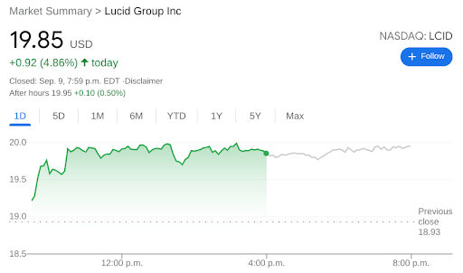 NASDAQ:LCID is a stock that has been known to have quite a few retail investors as fans, but on Thursday, a prominent analyst finally weighed in. Shares of Lucid gained 4.86% on Thursday, and closed the day at $19.85. The stock has now almost completely recovered from the one-day sell-off on September 1st as the PIPE investor lockup period came to an end. While sell offs and sentiment change are a part of any growth stock, it appears that the fear over the PIPE lockup period expiring were completely blown out of proportion.