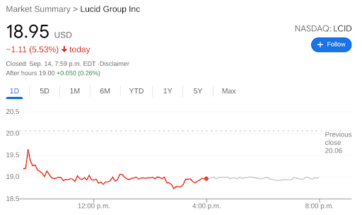 - NASDAQ:LCID fell by 5.5% on Tuesday as the broader markets tumbled yet again.