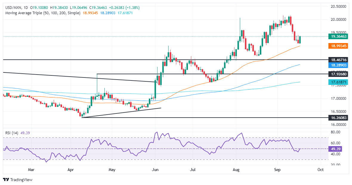 USD/MXN technical outlook: Mexican Peso falls as USD/MXN holds gains above 19.30