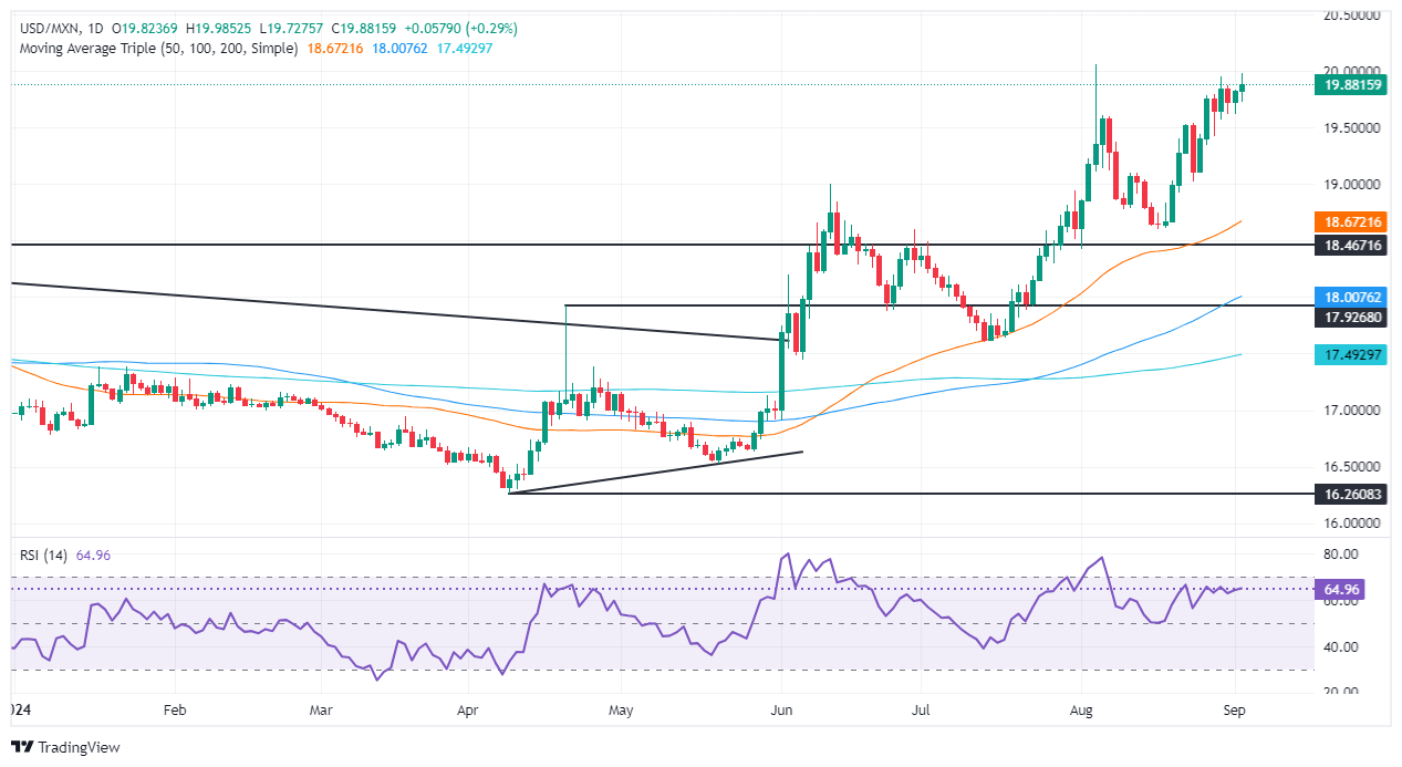 Technical outlook: Mexican Peso slumps as USD/MXN climbs above 19.80