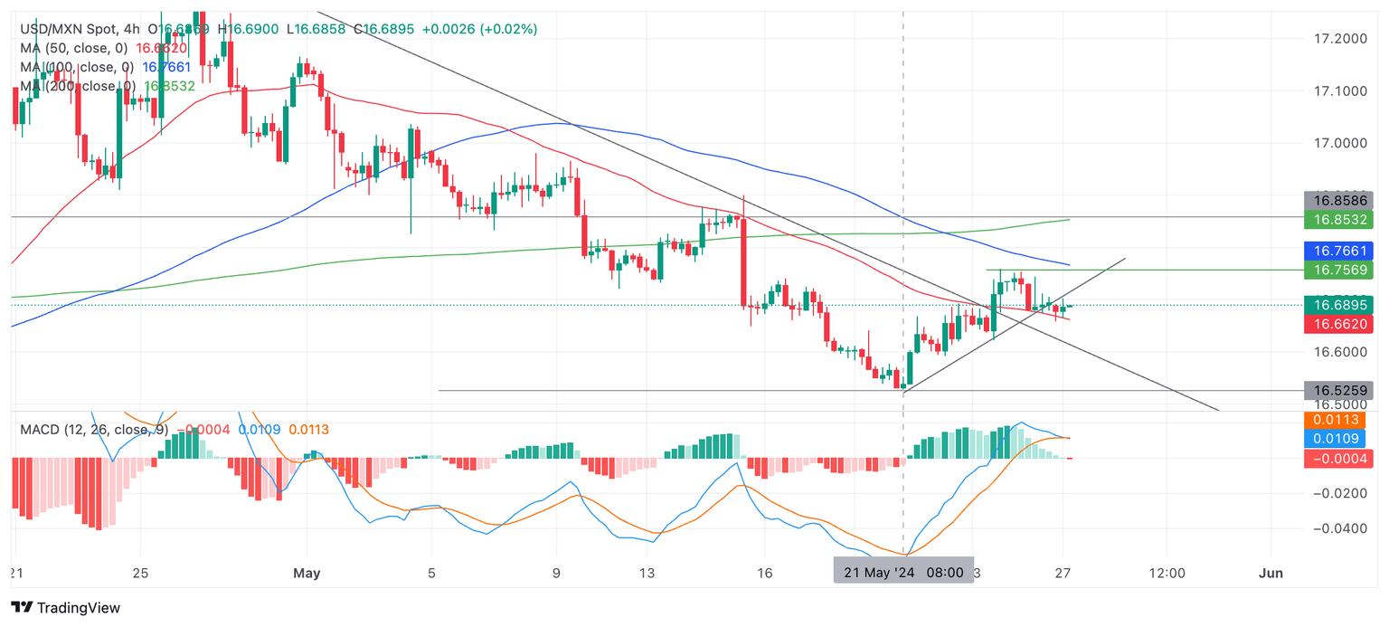 USD/MXN is exchanging hands at 16.68 at the time of writing, EUR/MXN is trading at 18.09 and GBP/MXN at 21.25.