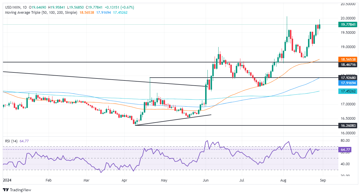 Technical outlook: Mexican Peso slumps as USD/MXN hits two-week high at 19.95