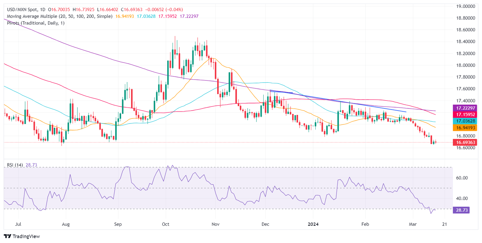 Technical analysis: Mexican Peso stays firm with USD/MXN spot below 16.70