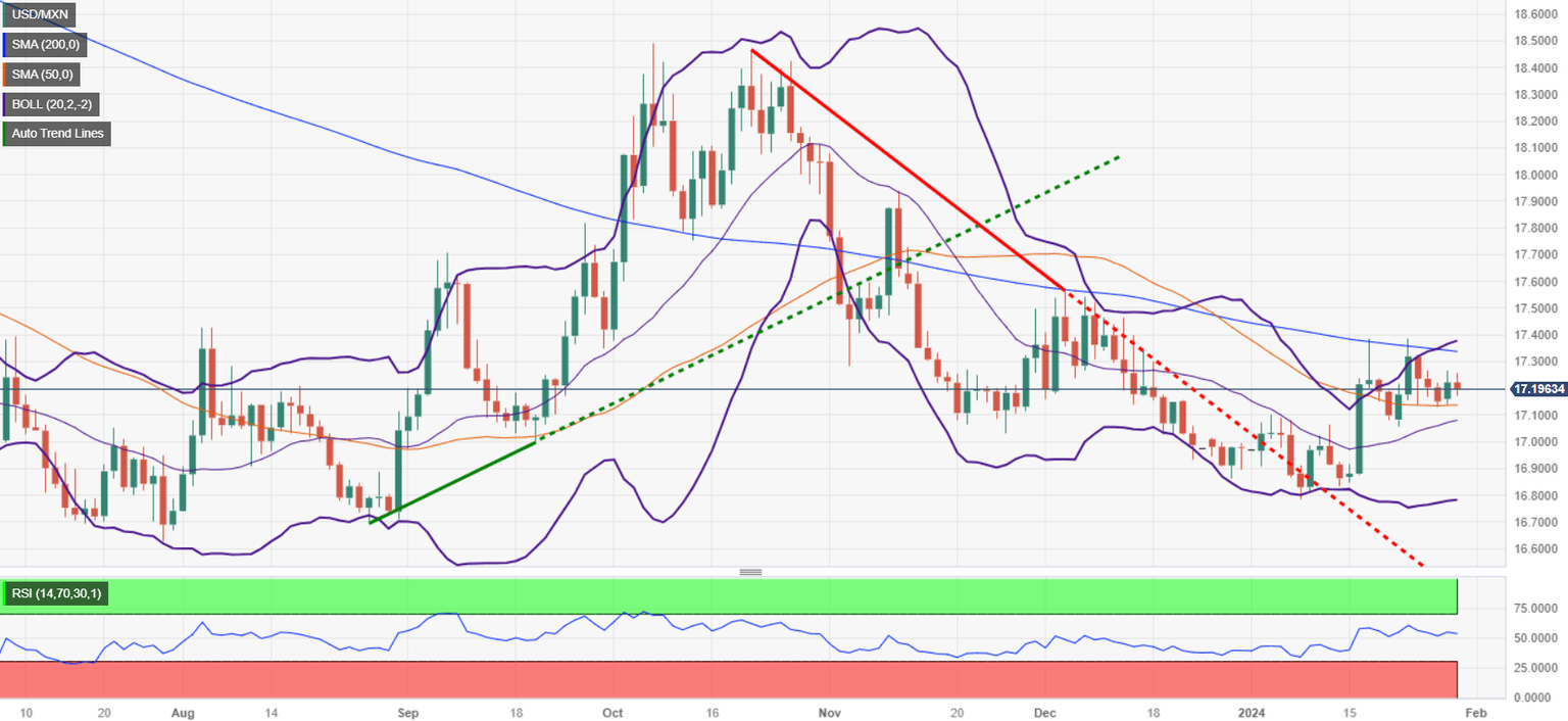 Technical Analysis: Mexican Peso status firm as USD/MXN hovers near 17.20