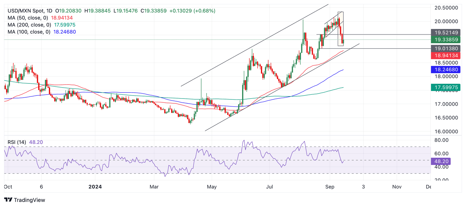 At the time of writing, one US Dollar (USD) buys 19.34 Mexican Pesos, EUR/MXN trades at 21.52, and GBP/MXN at 25.53.