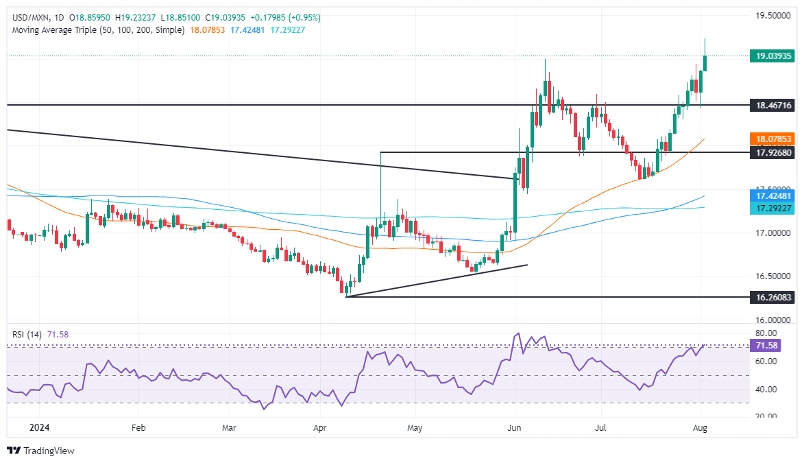 Technical analysis: Mexican Peso depreciates sharply as USD/MXN rises above 19.00