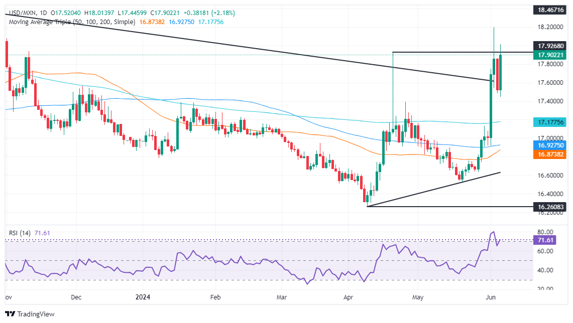 Technical analysis: Mexican Peso plunges as USD/MXN climbs past 17.80