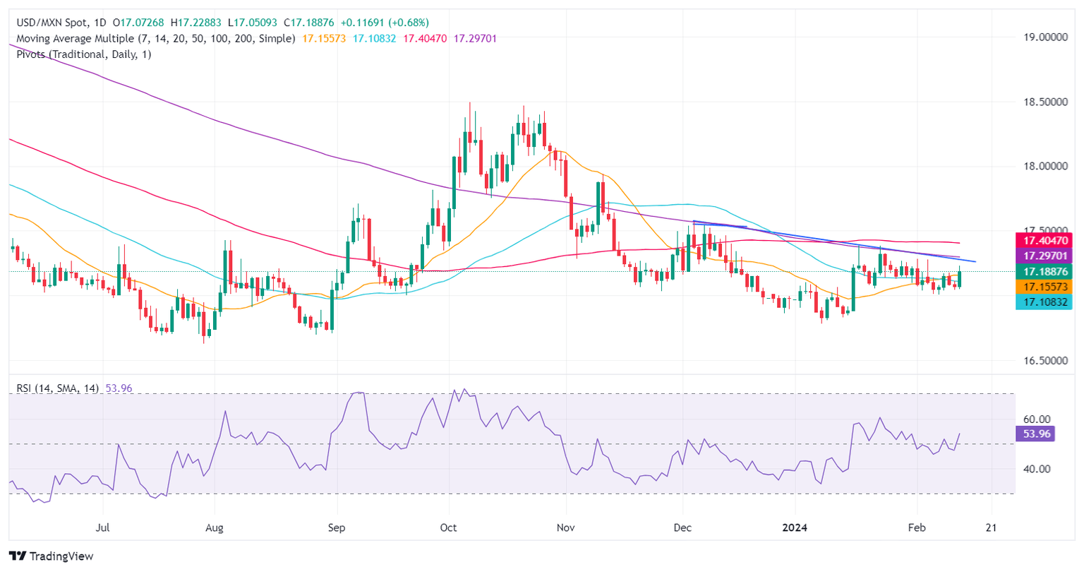 Technical analysis: Mexican Peso trips down as USD/MXN edges back above 17.15