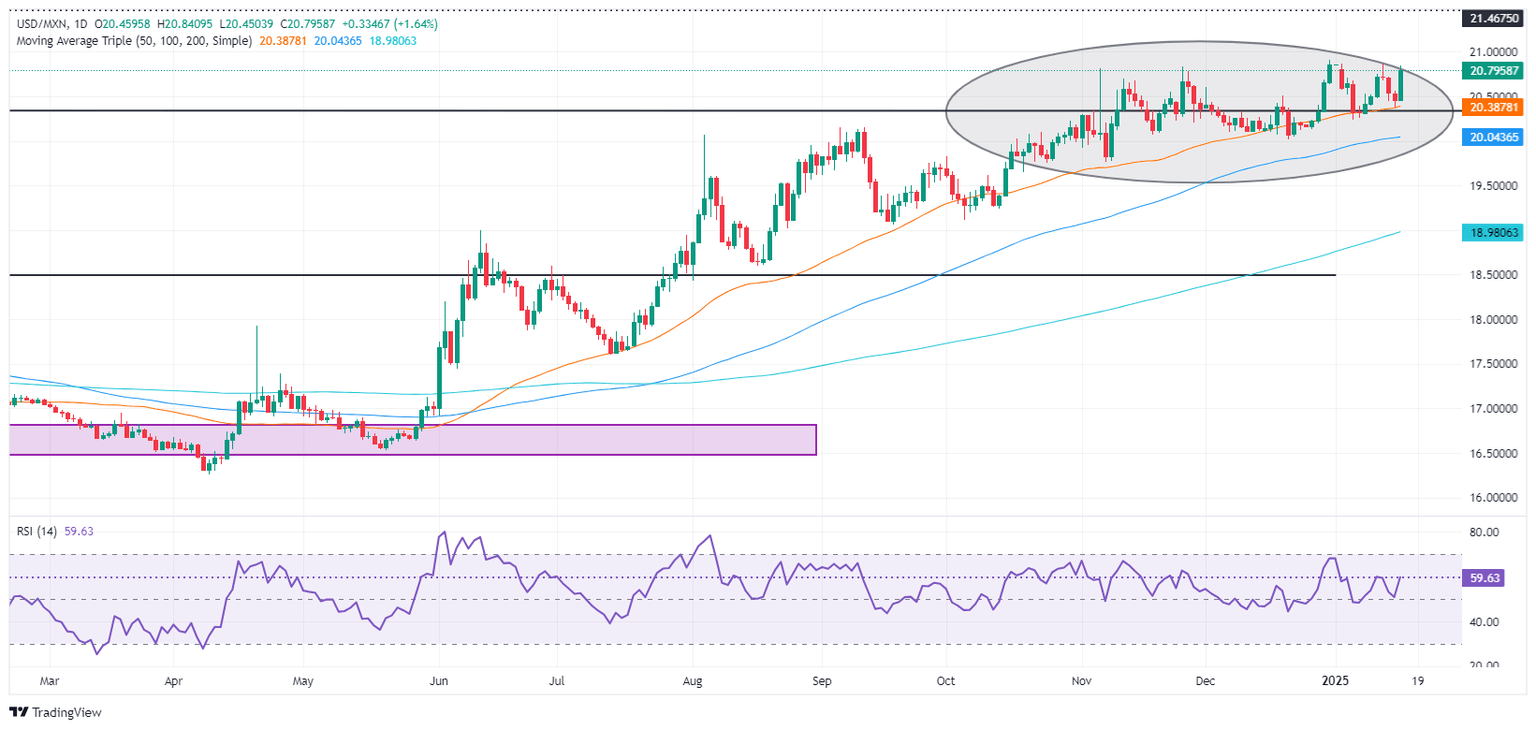 USD/MXN technical outlook: Mexican Peso plummets as USD/MXN climbs above 20.80