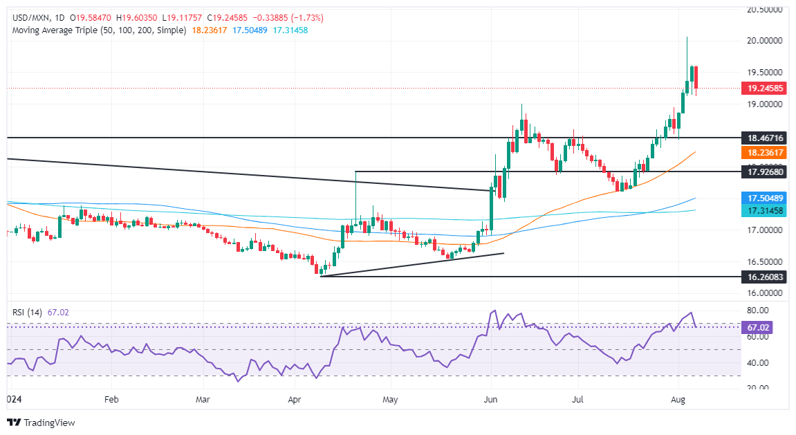 Technical analysis: Mexican Peso rebounds as USD/MXN slides beneath 19.30