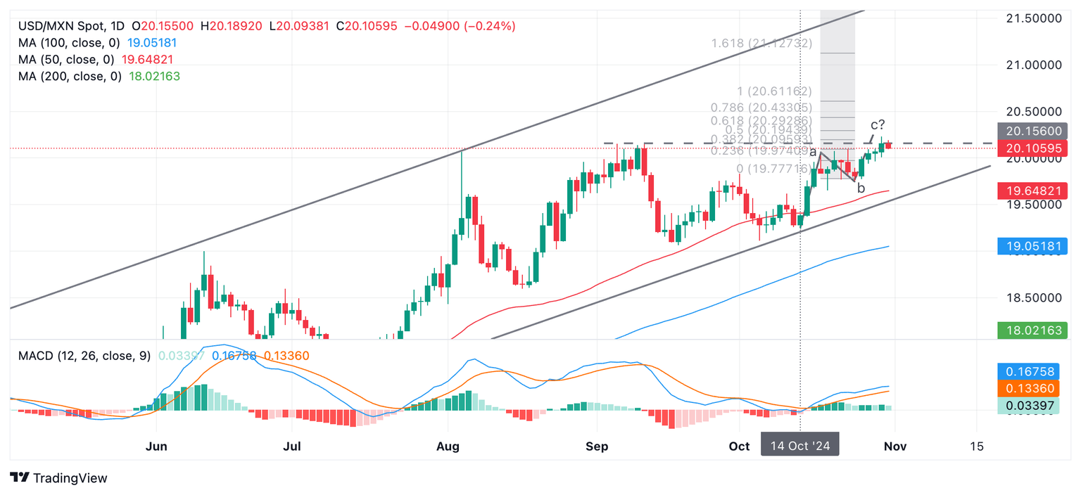 Technical Analysis: USD/MXN extends C wave of bullish pattern