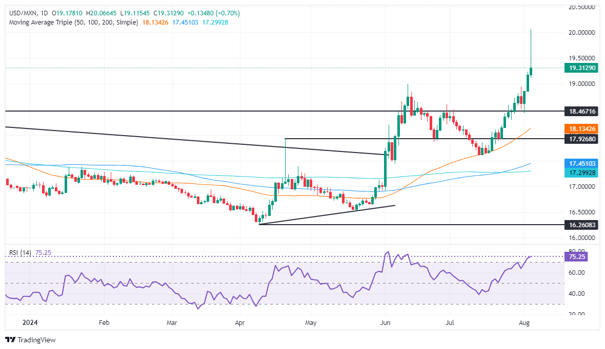 Technical analysis: Mexican Peso depreciates sharply as USD/MXN rises above 19.30