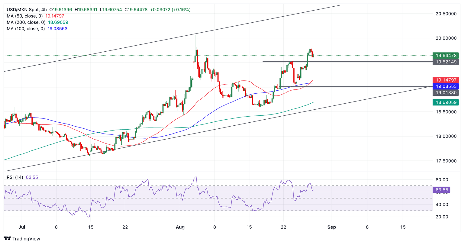 Technical Analysis: USD/MXN extends leg higher within rising channel