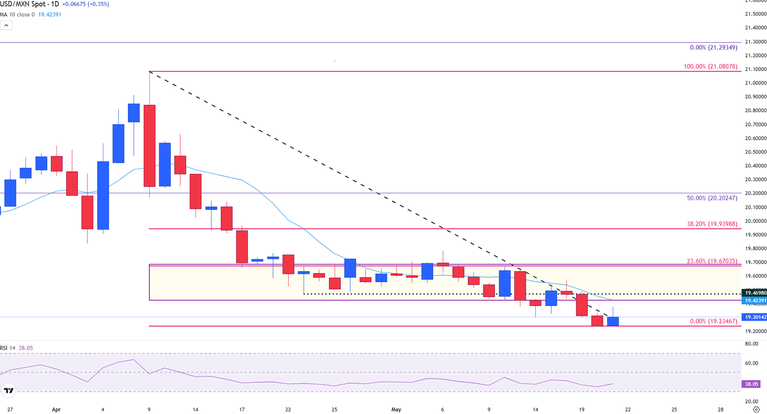 USD/MXN daily chart