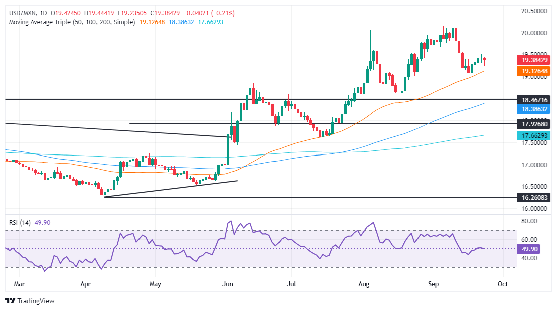 USD/MXN technical analysis: Mexican Peso recovers some ground as USD/MXN falls below 19.40