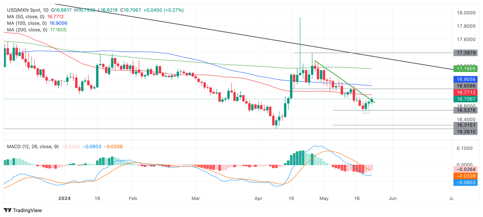 Technical Analysis: USD/MXN meets resistance at trendline